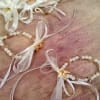 Είναι φτιαγμένα με διακοσμητικό χρυσό μεταλικό περιστεράκι, ιβουάρ πέρλες και χρυσό κρυσταλάκι και ιβουάρ κορδέλες.
