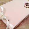 Ρομαντικό βιβλίο ευχών φτιαγμένο με λινό ιβουάρ ύφασμα και δύο στεφανάκια φτιαγμένα με σατέν λουλουδάκια.