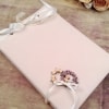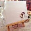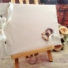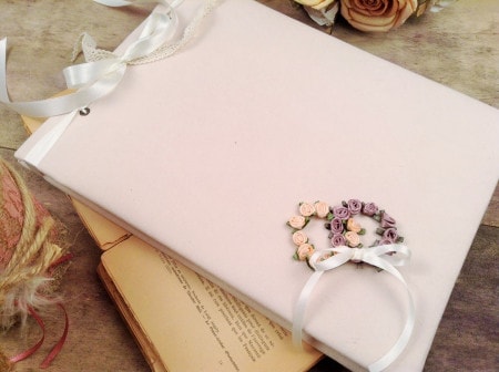 Ρομαντικό βιβλίο ευχών φτιαγμένο με λινό ιβουάρ ύφασμα και δύο στεφανάκια φτιαγμένα με σατέν λουλουδάκια.