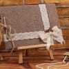 Βιβλίο ευχών με καμβά, παραδοσιακή δαντέλα κι έναν πανέμορφο φιόγκο με λουλουδάκια.