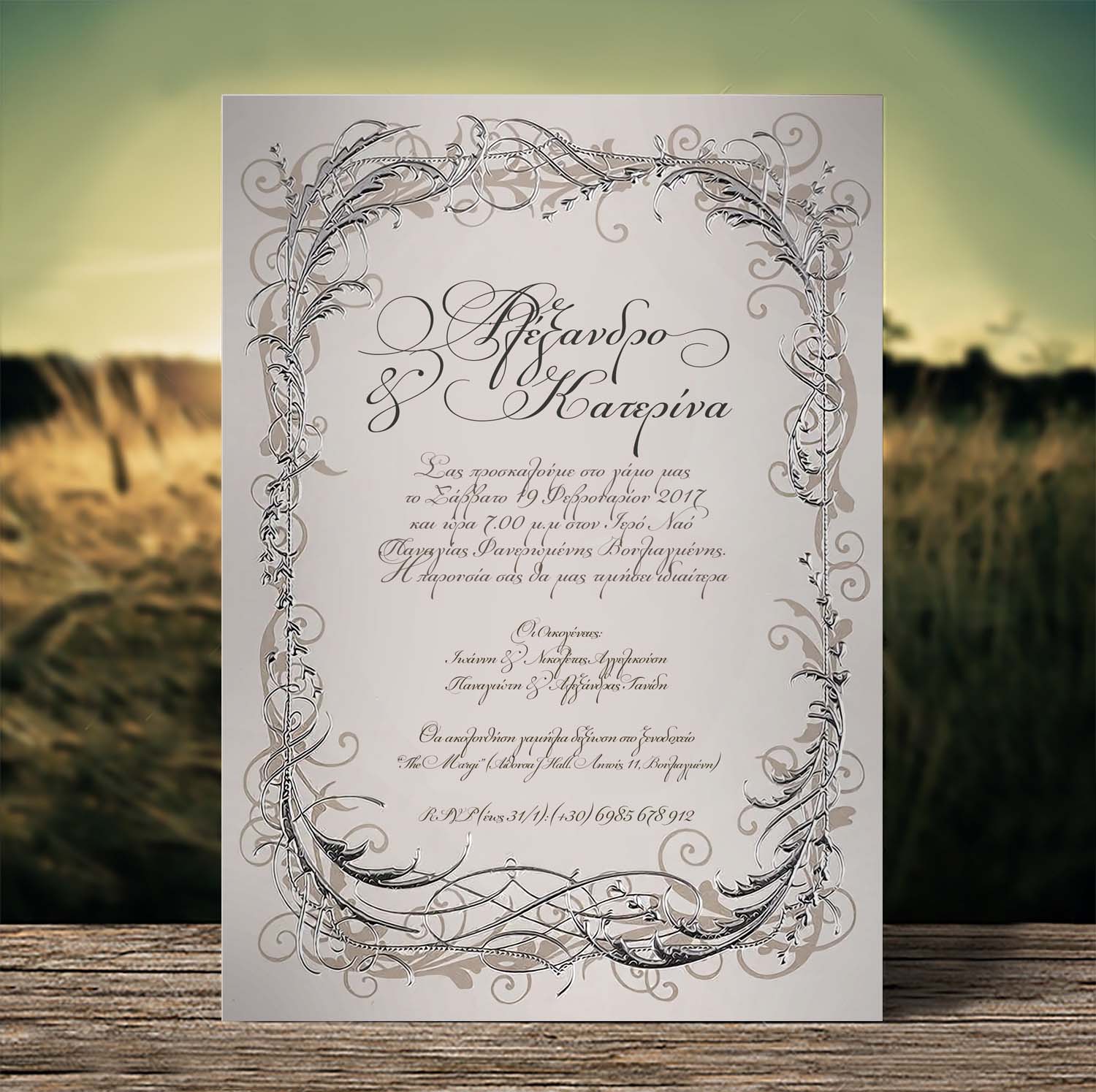 Μετά την αγορά σας, μας στέλνετε στο email sales@lenagamos.gr το κείμενο της πρόσκλησης, στο ίδιο στυλ με τον σχεδιασμό της πρόσκλησης που βλέπετε. Αν υπάρχουν μεγάλες διαφορές, και πολύ μεγάλα κείμενα, ίσως το αποτέλεσμα να μην σας ενθουσιάσει, συγκρινόμενο με τη φωτογραφία, επομένως, προσπαθήστε να το πλησιάσετε.