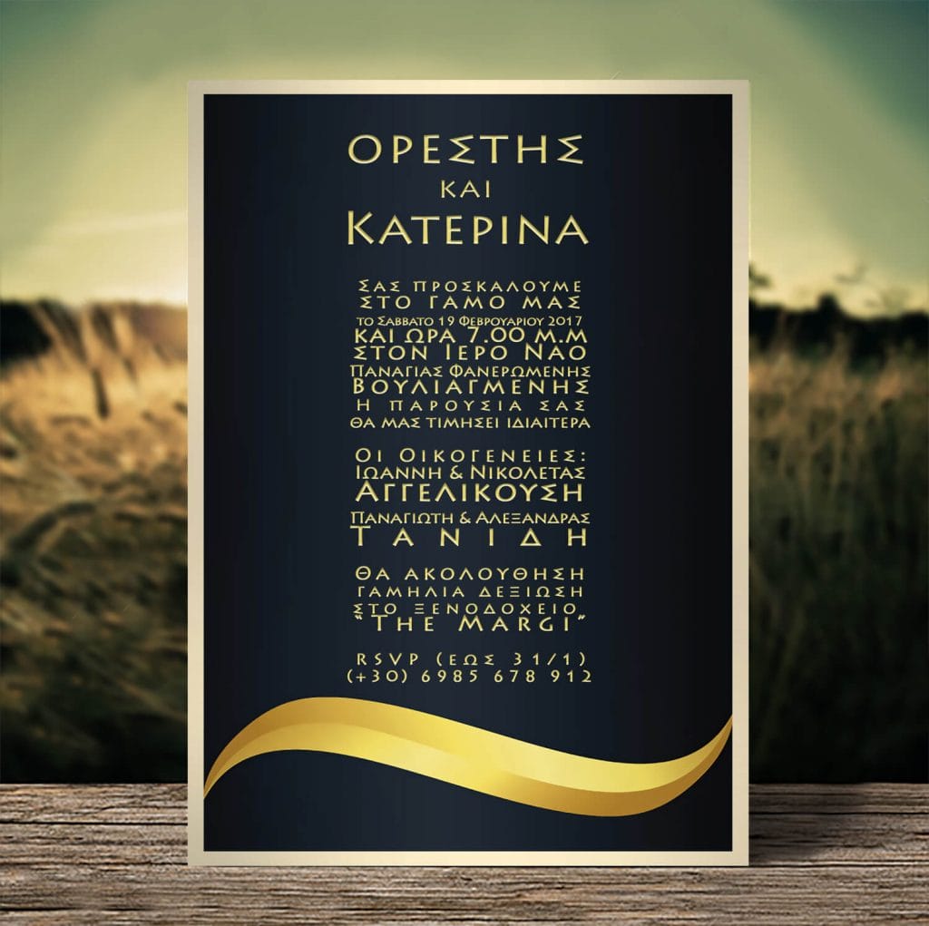 Μετά την αγορά σας, μας στέλνετε στο email sales@lenagamos.gr το κείμενο της πρόσκλησης, στο ίδιο στυλ με τον σχεδιασμό της πρόσκλησης που βλέπετε. Αν υπάρχουν μεγάλες διαφορές, και πολύ μεγάλα κείμενα, ίσως το αποτέλεσμα να μην σας ενθουσιάσει, συγκρινόμενο με τη φωτογραφία, επομένως, προσπαθήστε να το πλησιάσετε.