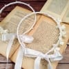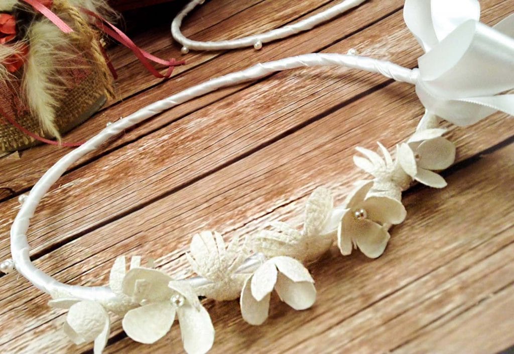 Φτιαγμένα με λουλουδάκια από φυσικό, μεταξωτό κουκούλι και πέρλες, στο πλάι.