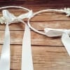 Πίσω απλές σατέν κατάλευκες κορδέλες.