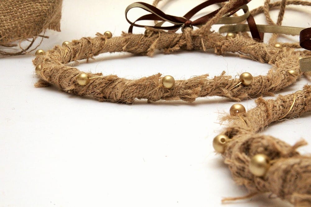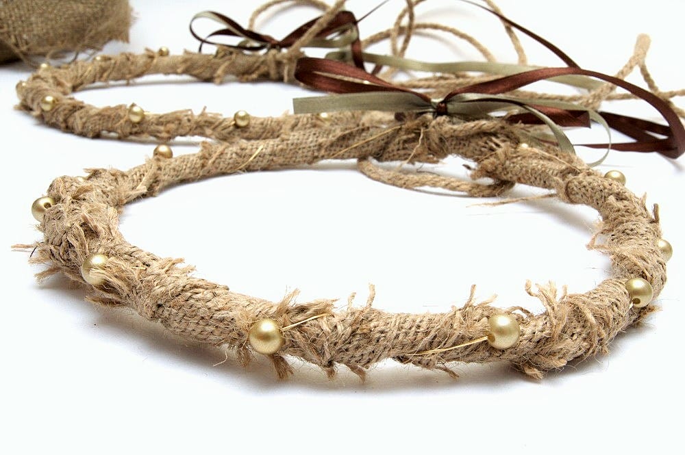 Φτιαγμένα από λινάτσα και διάσπαρτες χρυσές ή ιβουάρ πέρλες.