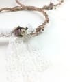 Πίσω δένουν με off-white δαντελίτσα, που σχηματίζει και τους φιόγκους. Πάνω τους διακριτικά σατέν λουλουδάκια.