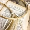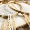 Πίσω δύο ρομαντικές δαντέλες και ιβουάρ τρέσσα τα στολίζουν και τα ενώνουν μεταξύ τους.