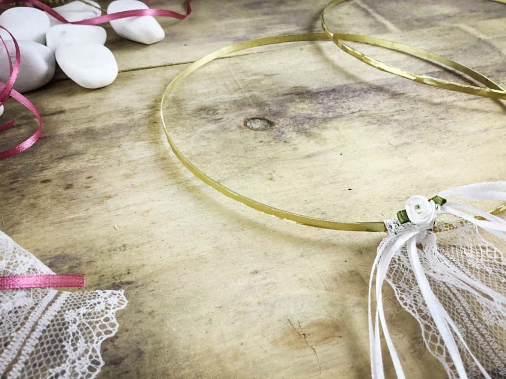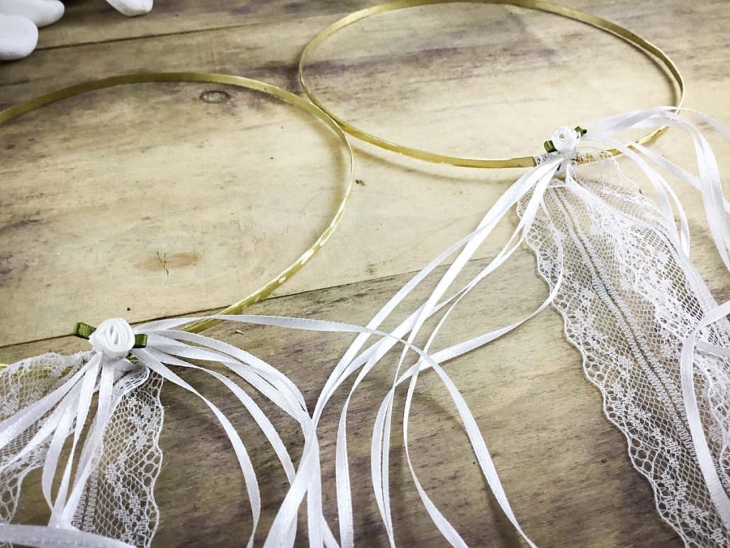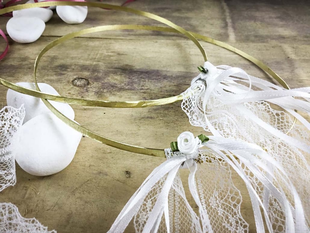 Οι κορδέλες και το λουλουδάκι μπορούν να γίνουν σε ιβουάρ χρωματισμούς ή μπορεί να γίνει απλό δέσιμο χωρίς λουλούδι.