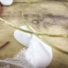 Δένουν πίσω με λευκή δαντέλα, λευκές σατέν κορδελίτσες και ένα λευκό σατέν λουλουδάκι.