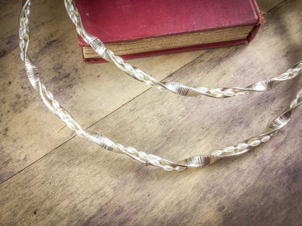 Ανάμεσα στο μέταλλο μία σειρά από πέρλες το κάνουν πιο ρομαντικό.