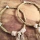 Φτιαγμένα από αντικέ ορείχαλκο, ιβουάρ δαντελίτσα και κορδέλες πίσω και ένα κλαδάκι αποξηραμένης λεβάντας στο τελείωμα. Απλά, λιτά και πολύ όμορφα για όσα ζευγάρια θέλουν την απλότητα αλλά και την παραδοσιακή-ρουστίκ νότα