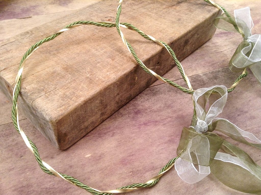 Έχοντας κυματιστό σχηματισμό, πλέκονται αρμονικά μεταξύ τους, το μέταλλο και το σατέν κορδόνι, δημιουργώντας ένα πανέμορφο σύνολο.